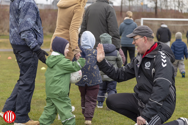 Mandag den 4. april klokken 17.00 mødte ca. 30 forventningsfulde børn i alderen 2 til 5 år, plus forældre op på SSB tribunen, klar til at sparke forårssæsonen i gang🙂